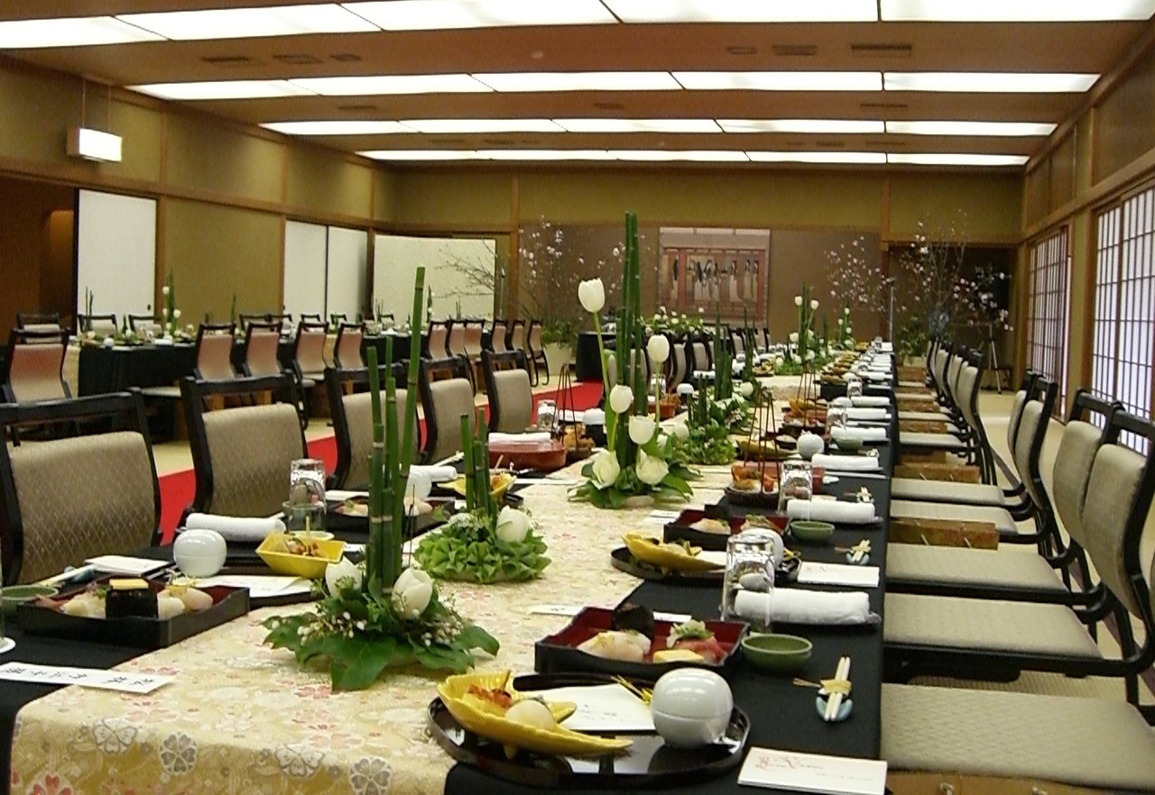 玄関母屋は明治25年からのもので、ロビーは昭和56年の改築時からのつくりです。ウグイス、セミとカエル、スズムシの声、冬は静けさがここまでやってきます。宴会場は新館の誕生とともに、それまでの木造の宴会場「臨渓閣」から「管絃」(115畳・お座敷で100名様、椅子席で80名様収容)へと生まれ変わりました。
